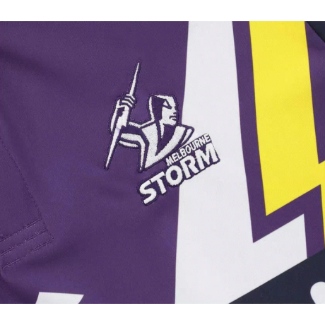 Authentic club details: features embroidered Melbourne Storm crest and Telstra NRL Premiership badges for official recognition and team pride