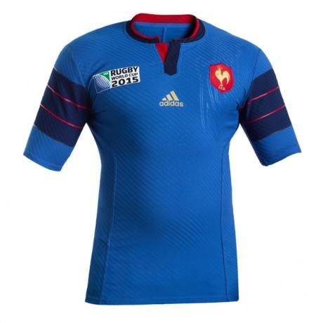 France 2015 home jersey officially worn by Les Bleus at Rugby World Cup 2015, showcasing national pride.