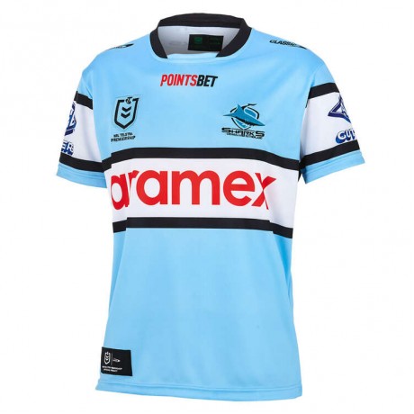 Features embroidered Sharks club badge and Telstra NRL Premiership logo on the chest for official match-day authenticity.