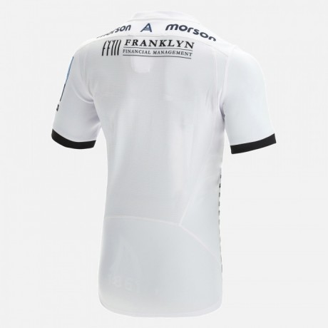 Sale Sharks Away Rugby Jersey 2021-22 delivers bold style and club legacy on a pristine white canvas, enhanced with a grey torso graphic, embossed shark fin and “1861” detail—perfect for fans cheering from the stands.