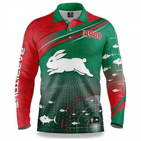 Official NRL Rabbitohs fishing shirt: Licensed product featuring the club’s authentic branding.