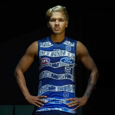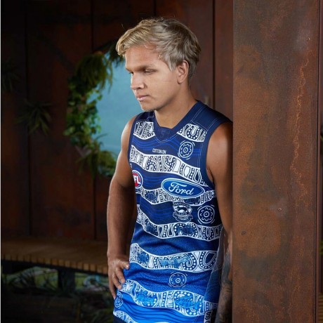 Tags: Geelong Cats guernsey, Indigenous AFL jersey, cultural heritage, Quinton Narkle