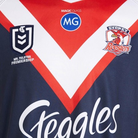 Official Sydney Roosters replica jersey in classic blue and red team colors, perfect for true fans.