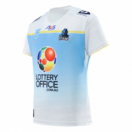 The Gold Coast Titans Men's Away Rugby Jersey 2025 captures the spirit and pride of the Titans' wide catchment area, from the Gold Coast to Lismore and Logan, with a bold and stylish white design. Perfect for fans who want to show their support in style, this jersey combines heritage and innovation in every stitch.