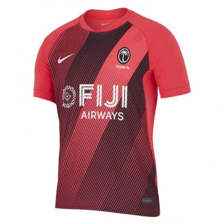 Distinctive team details including embroidered Fiji 7s logo over the heart, Nike swoosh, and pressed Fiji flag.