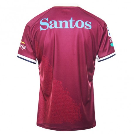 Queensland Reds Mens Home Rugby Jersey 2021 brings classic maroon style and modern performance together for loyal Reds supporters. This official home jersey features the names of every Queensland rugby club within the state silhouette, celebrating the unity of rugby in Queensland.