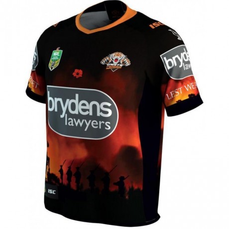 Tags: Wests Tigers jersey, ANZAC rugby shirt, men's rugby apparel, ISC rugby kit